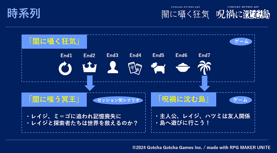 「闇に囁く狂気」「闇に嗤う冥王」「呪禍に沈む島」の時系列です。